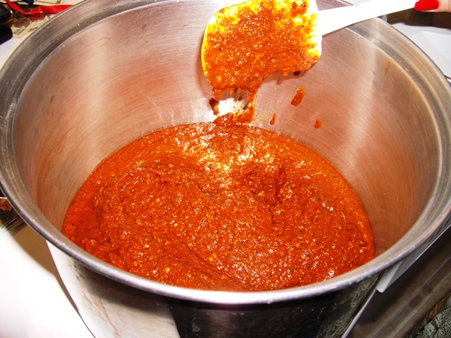 We made just over 8 liters of sauce. Enough for my wife to give away and some for us to keep.