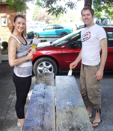 Alaina and Tallis applying clear urethane