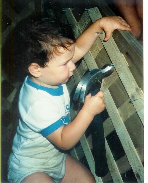 My youngest son learning to hammer a nail. Photo by Alan Viau