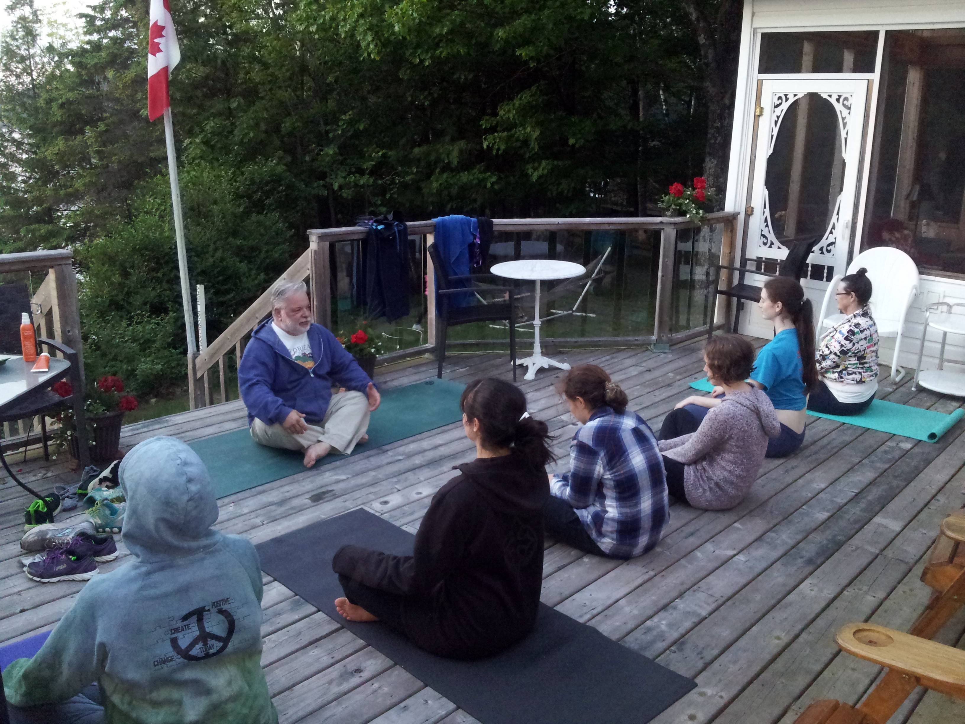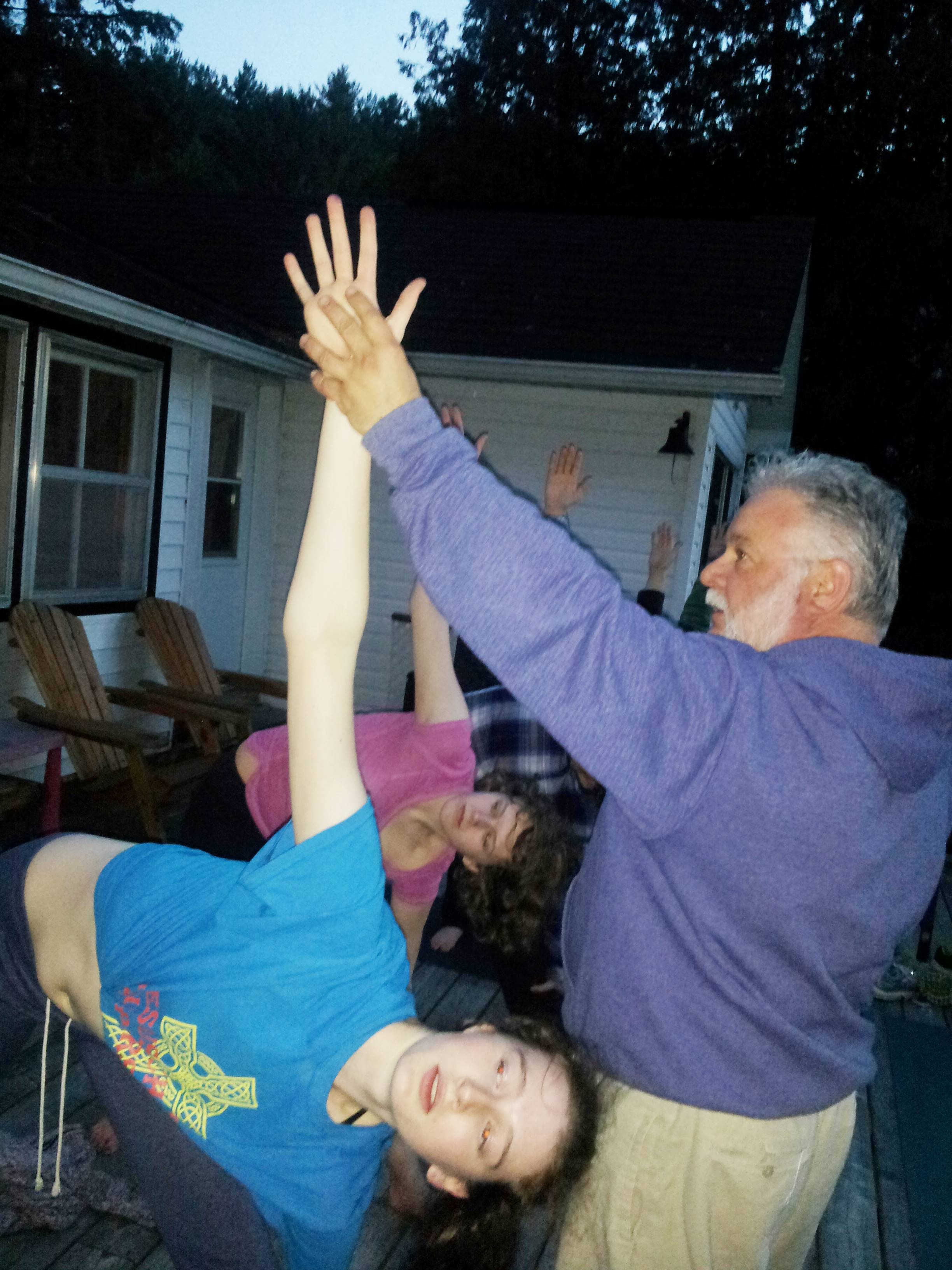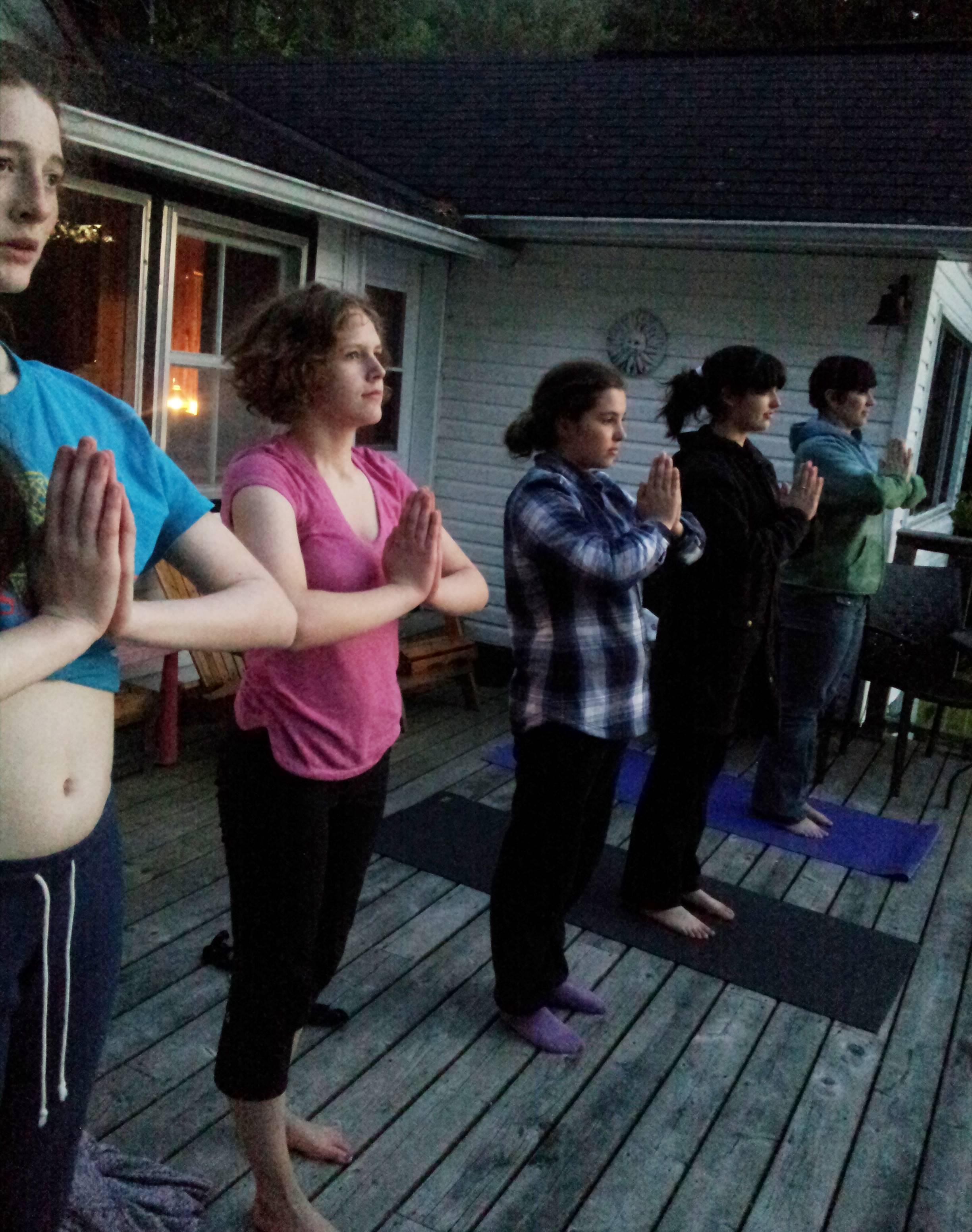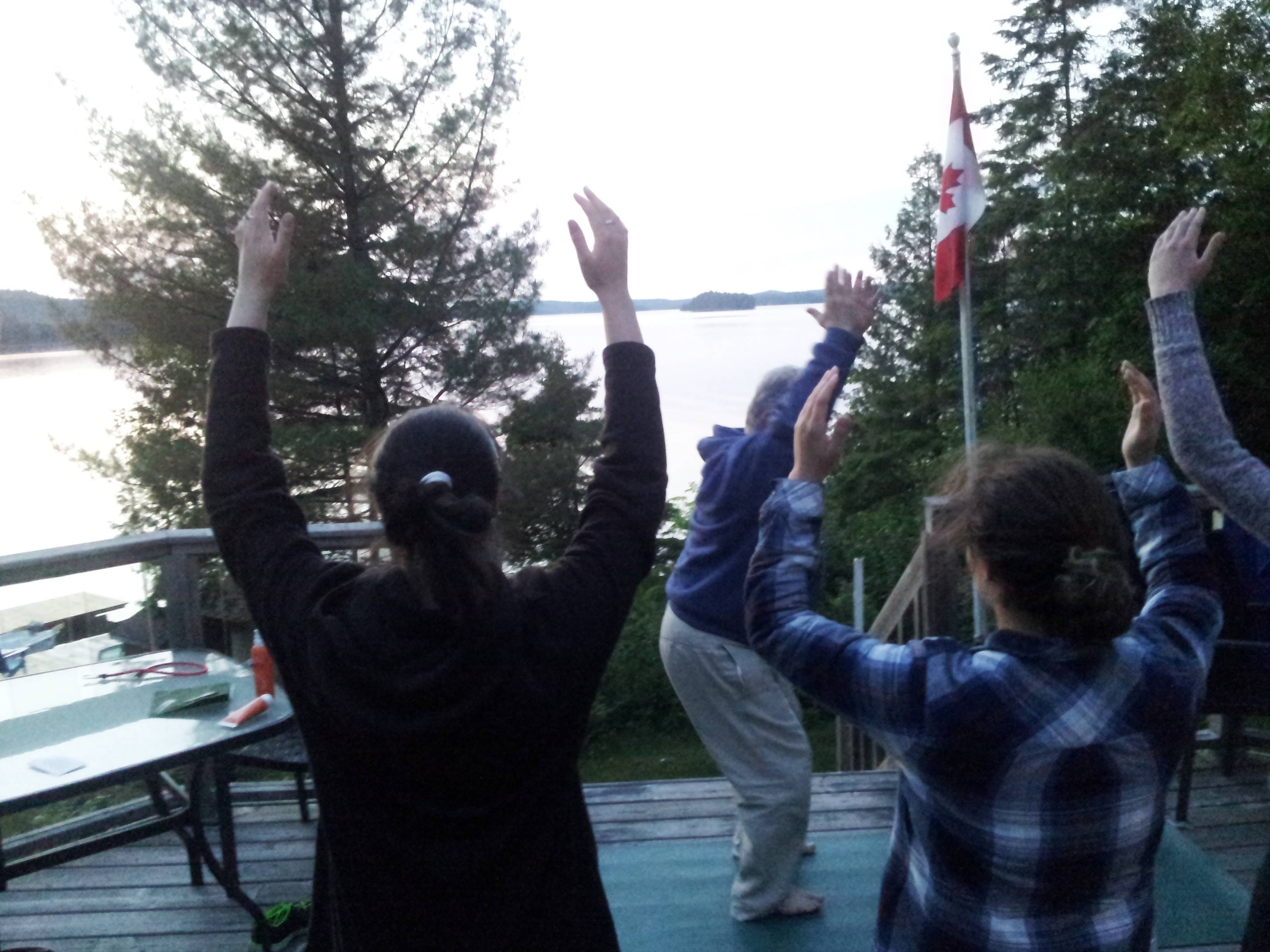 I was at a retreat for our theatre troop this weekend where I led sunrise and sunset yoga sessions. It was a gorgeous Canadian landscape by a lake. The mosquitoes helped us create a new dynamic yoga pose.