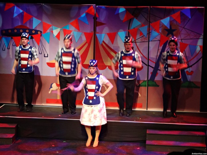 I loved this production directed by Don Fex, musically directed by Chris Lucas, and choreo by Brenda Solman. It is lively, fast-paced, funny, and well executed in every aspect. Anyone involved is in a full work out for the run of the show.