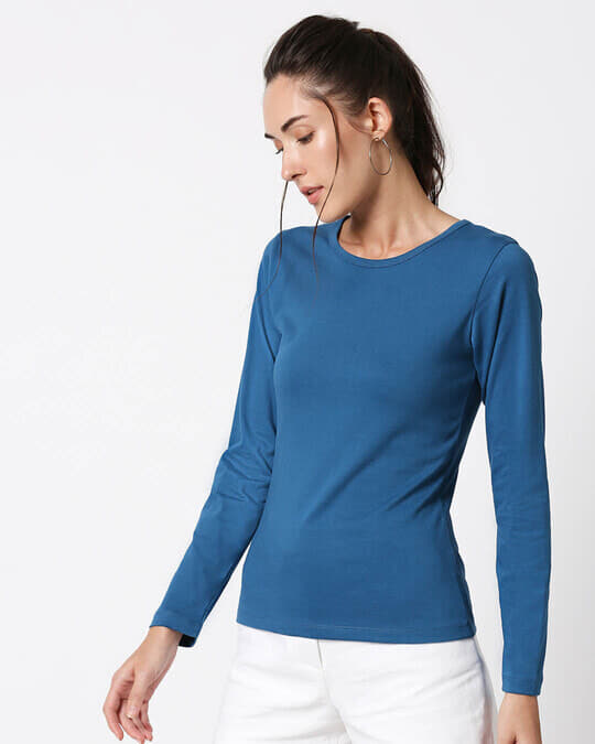 A high neck full sleeve Tshirts for women looks great when paired with tight dark jeans, jeggings, or joggers. It’s one of the perfect casual wear for winter, especially when choosing dark colors or a black full-sleeve T-shirt. Accessorize this trendy costume with some bold earrings and a sneaker to complete the look.