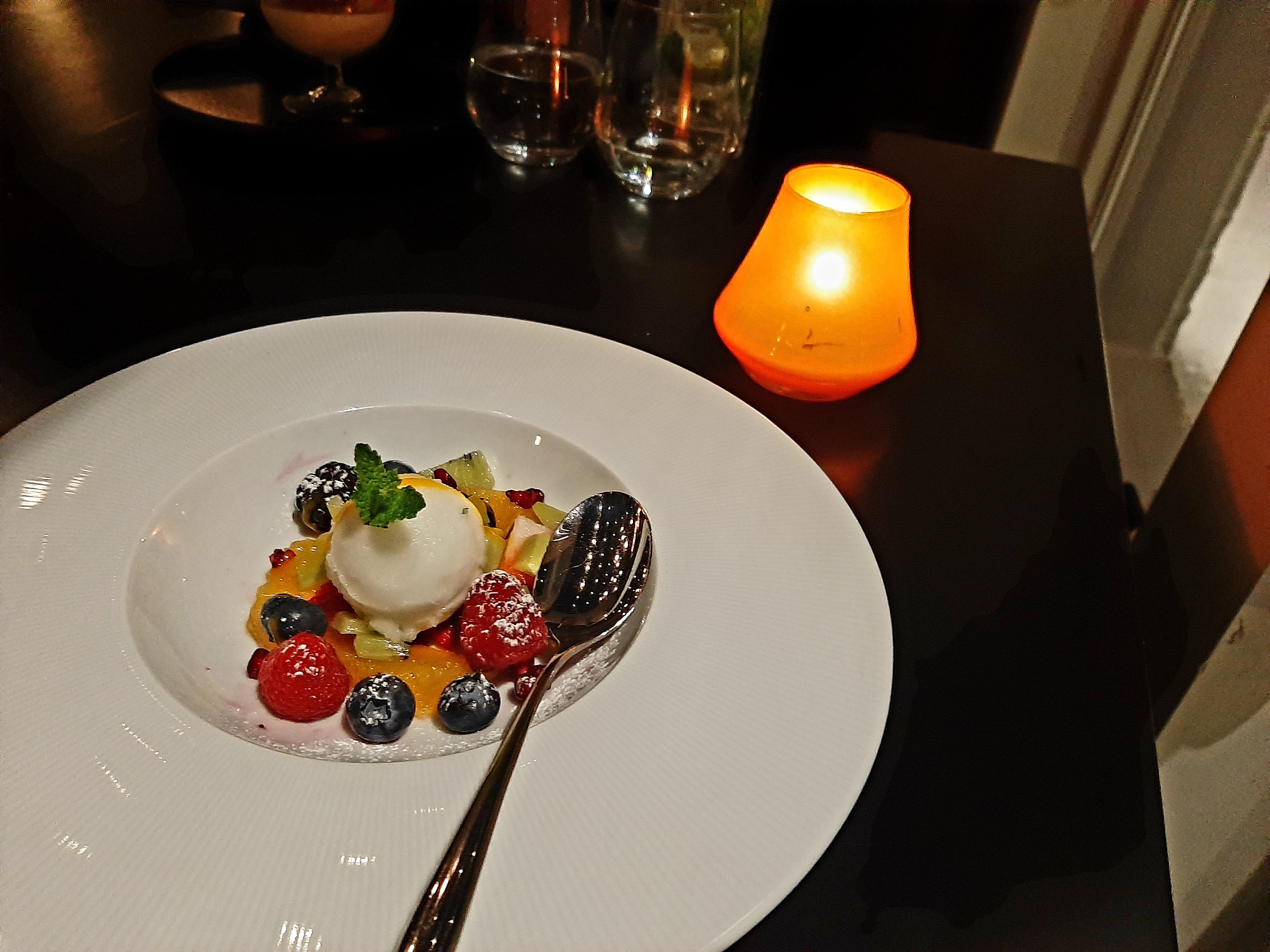 Finally, it was time for dessert, and we were impressed by our selection. Maureen opted for the Coconut Mousse and Alaina the Fruit & Lime Sorbet, and both were outstanding. The Coconut Mousse was creamy and rich, with the perfect amount of sweetness that didn’t overpower the delicate coconut flavor. The Fruit & Lime Sorbet was a refreshing and light dessert that was the perfect way to end the meal.