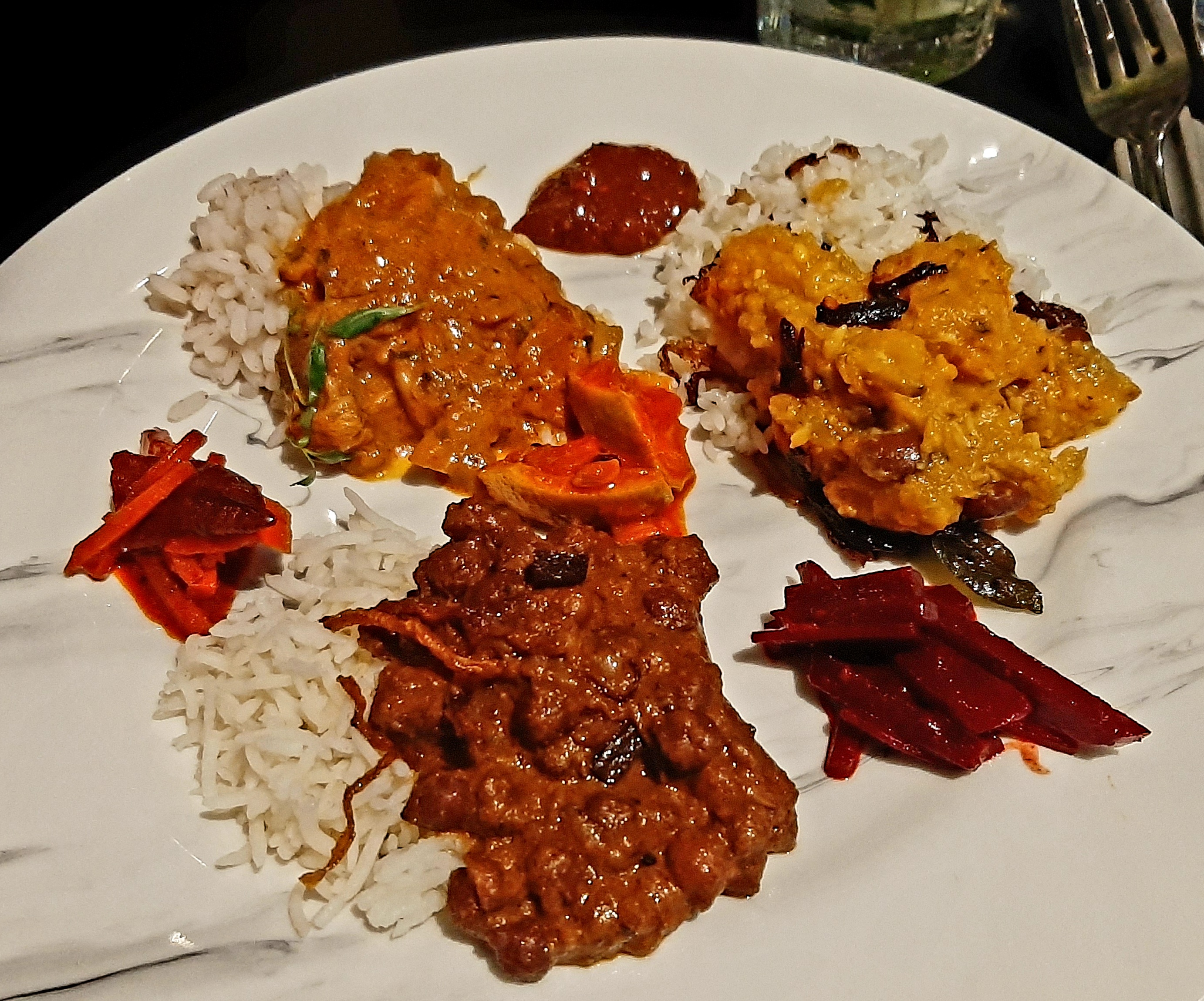 The sides of rice and pickles that we ordered were the perfect complement to the curries, with fluffy and fragrant grains and tangy pickle that added an extra layer of flavor and texture to the meal.