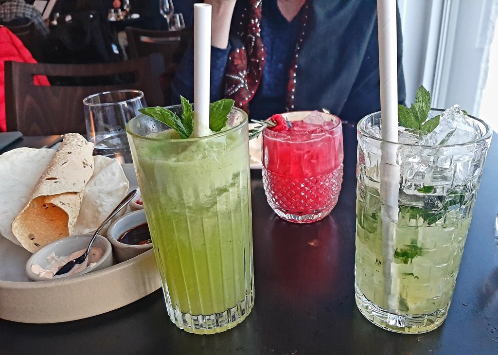 We started off with some fantastic drinks – Maureen went for the Lagoon’s Dream, which was a gin/raspberry/lime fruity and refreshing cocktail that set the tone for the meal ahead. Alaina opted for the Lime M Rickey and I had the Munnar Mojito, both of which were equally as delicious.
