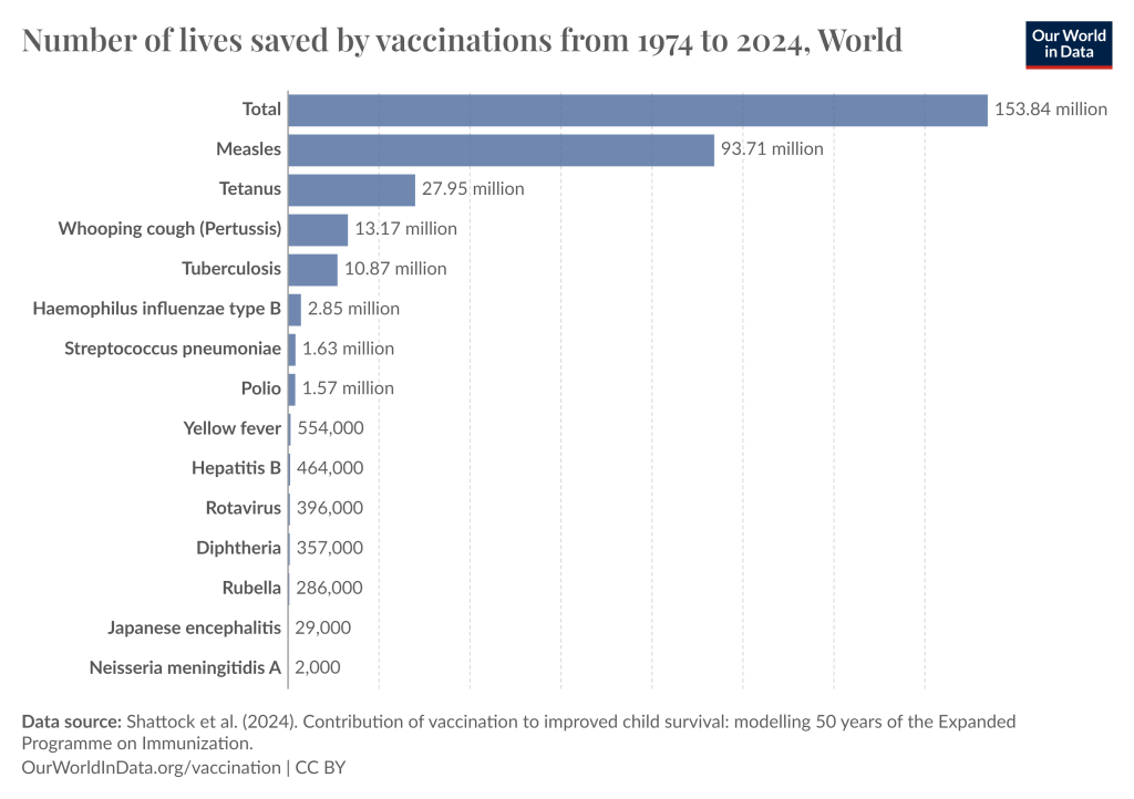 In the face of a worrying trend where an increasing number of parents are choosing not to vaccinate their children, it’s crucial to remember the profound impact vaccinations have had on global health. As highlighted in Hannah Ritchie’s recent article, vaccines have been nothing short of miraculous, saving an estimated 150 million children over the past 50 years. That’s a child’s life saved every ten seconds from a potentially fatal disease.